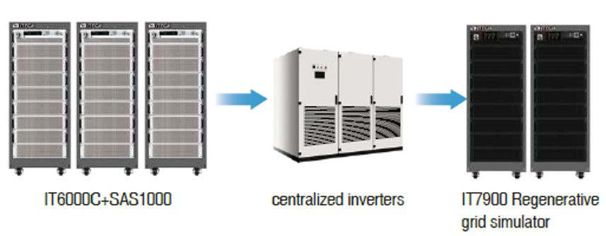 ITECH provides professional testing solutions for global renewable energy development. Currently, ITECH offers a new generation of grid simulators, battery simulators, PV simulators, AC/DC electronic loads and bidirectional DC power supplies with high power density, high speed and energy regeneration for tests of renewable power generation. In addition, ITECH offers the solar array simulation SAS1000 and the energy storage battery characteristic curve simulation software BSS2000, which reproduces the real power generation curve waveform. Its modular design and flexible power extension allow you to switch freely between low-power string inverters and high-power grid-connected inverters.